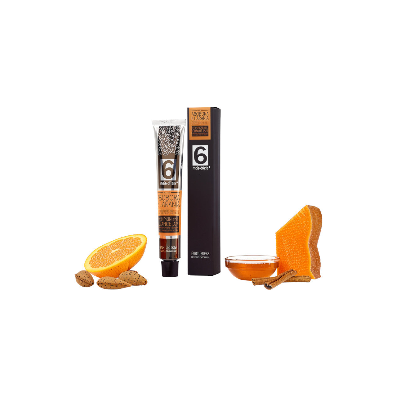 Uma compota portuguesa tradicional reinventada com elegância e profundidade. Combina-se a suavidade da abóbora com a frescura da laranja, enriquecida por dois méis aromáticos rosmaninho e eucalipto mais a canela e amêndoas tostadas. O resultado é um perfil de sabores com camadas: doçura moderada, acidez cítrica, notas florais, especiarias e leve textura de noz.